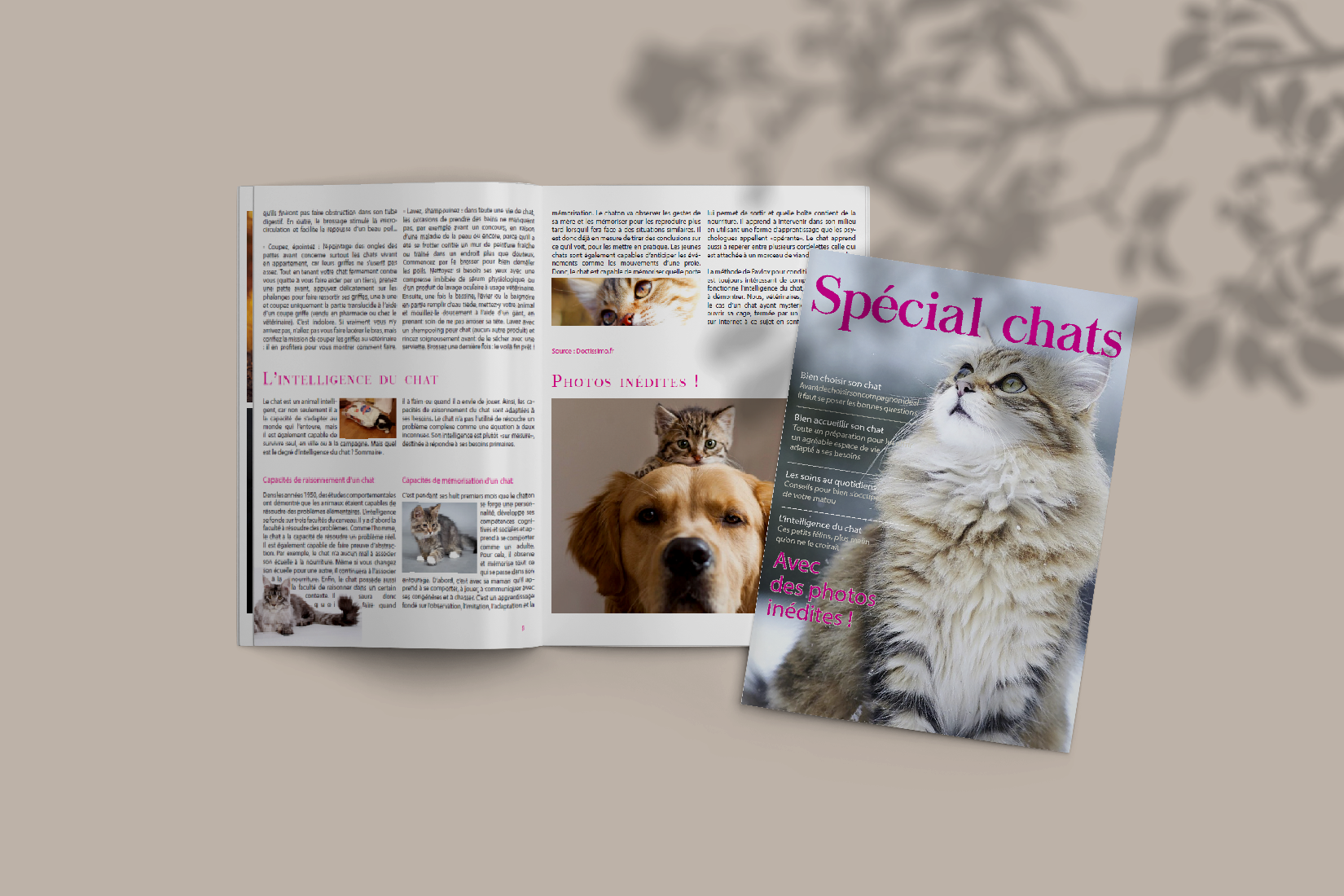 LE PROJET Travail réalisé dans le cadre d'un cours de mise en page. Mise en page d’un magazine sur les chats à partir de textes et de photos fournies. TÉLÉCHARGER LE PDF