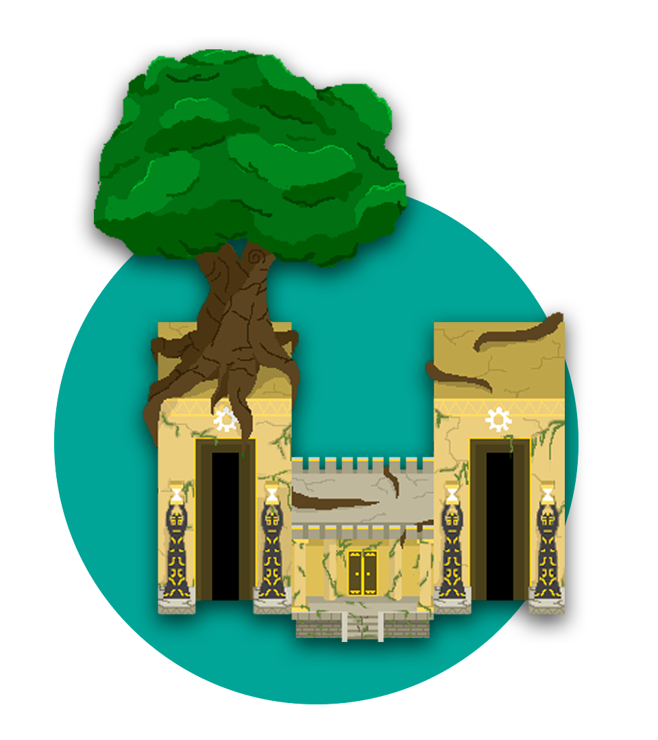 Le temps et une porte verrouillée sont au coeur de ce jeu. Pour le symbole du logo j'ai donc choisi une représentation stylisée d'un sablier surmonté d'un engrenage. Pour la typo, mon choix s'est porté sur "poseidon" car son style correspondait bien à l'ambiance ancienne et mystérieuse du jeu qui tire son origine d'un peuple vivant dans le désert.